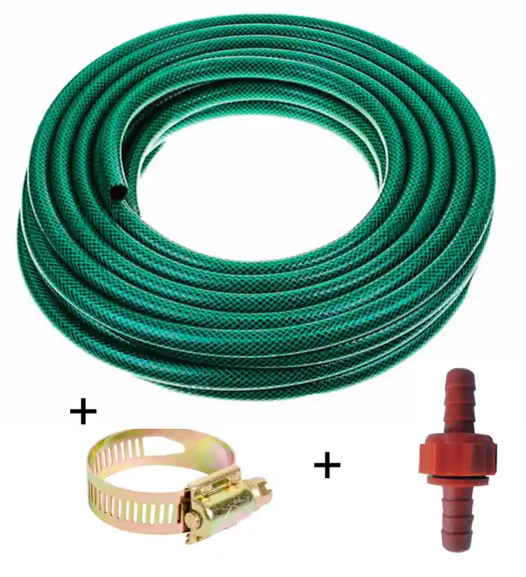 10 metros Manguera de Jardin con Racor y Abrazadera instalados, lista para utilizar