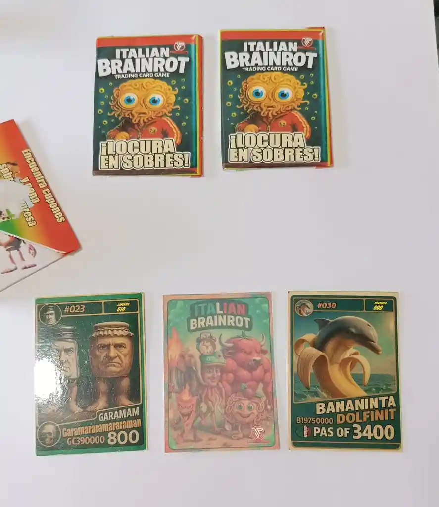 10 SOBRES DE LAMINAS COLECCIONABLES ITALIAN BRAINROT Incluye: 10 SOBRES de láminas coleccionables Italian Brainrot ( Cada paquete trae 3 Laminas) DISPONIBLES 50 UNIDADES