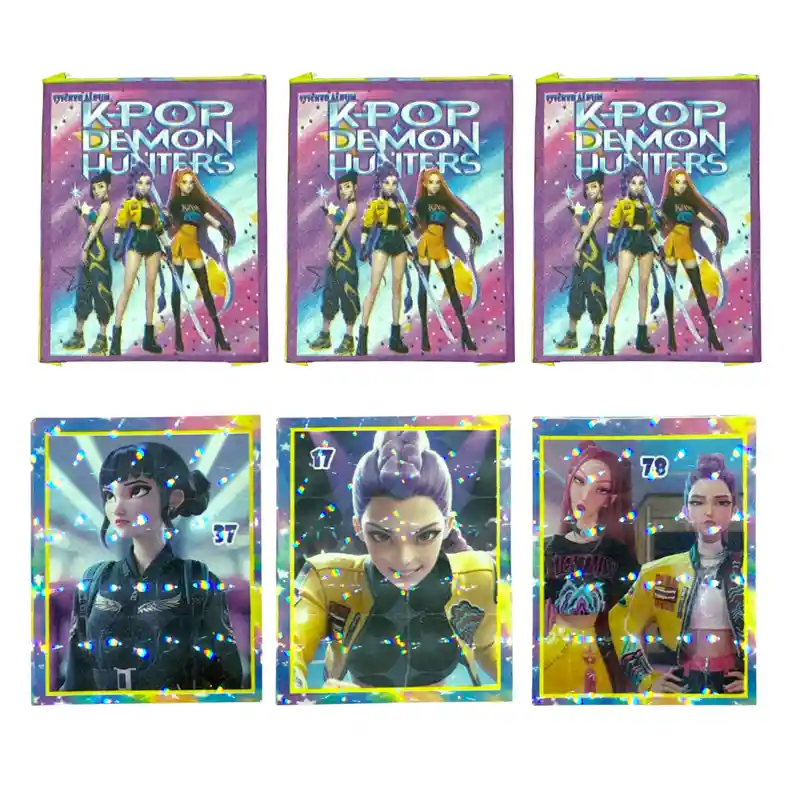 Láminas Autoadhesivas para Álbum Las Guerreras K-Pop (KPop Demon Hunters) Incluye: 50 sobres con 2 a 3 láminas por sobre (entre 100 y 120 láminas autoadhesivas en total) Diseño: Las Guerreras K-Pop (KPop Demon Hunters) Colección ideal para fans del K-Pop, anime, ilustración y personajes femeninos poderosos. ¡Diversión, colección y creatividad en un solo paquete! Nota: Marca genérica, no son colección Panini.