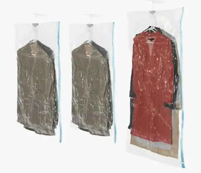 12 BOLSAS CON CIERRE HERMETICO DE EMPAQUE AL VACIO CON VALVULA DE EXTRACCION USO SUGERIDO: Ideal para viajar, se adapta a maletas de mano de tamaño grande, mediano y pequeño. También es perfecto para guardar pequeños artículos para el hogar. Grande y extra grande - Ideal para guardar artículos cómodos y voluminosos como cojines, cortinas, cortinas y otras cosas. Vestuario de transición de ropa de verano a invierno. Bolsas reutilizables Fabricado en material PA + PE resistente. Puede usar la misma bolsa para volver a empacar para su viaje de r egreso. Tecnología de sellado de doble cremallera con resistencia industrial para funciones herméticas e impermeables. Protegiendo sus objetos de malos olores, bacterias y otras partículas dañinas. Especial para empacar cosas al vacío reducen del 50% al 95% del volumen inicial de las cosas. Ideal para empacar o colgar ropa delicada o comida y para viajes largos donde tienes poco espacio.