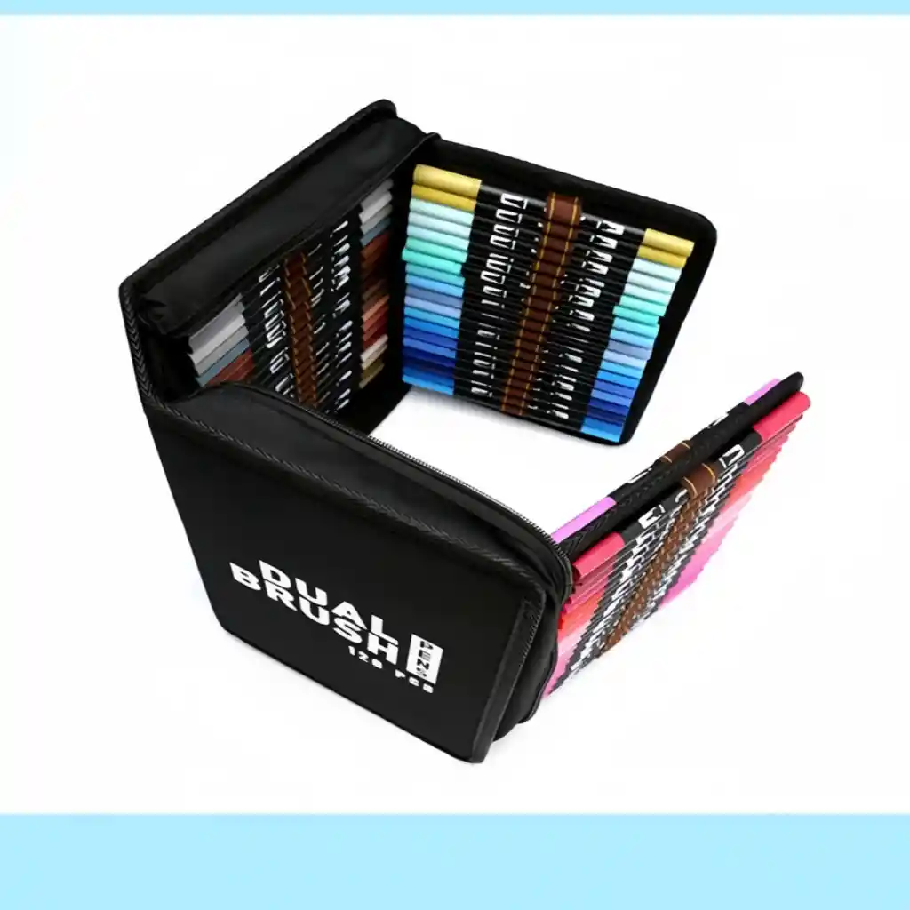 Colores vibrantes para dar vida a tus ideas Ideal para artistas, estudiantes y amantes del dibujo que buscan calidad y variedad en un solo set. 120 colores intensos y variados Doble punta: pincel + fina 🖌️✏️ Tinta de secado rápido Colores mezclables y degradables Estuche organizador portátil
