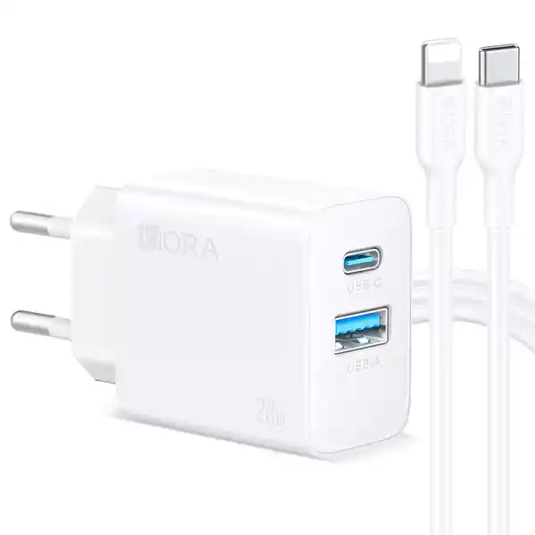 Cargador Rápido 20W 1Hora Doble Puerto (A + C) Gar163 Tipo C Blanco