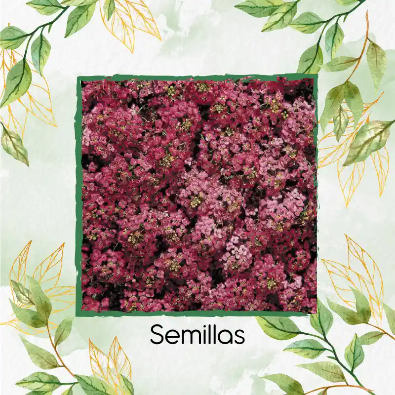 Bienvenido a Garden Green, Tú Vivero Virtual Una vez realizada la compra, te indicaremos como llevar el proceso de germinación paso a paso de una manera precisa, para que este sea exitoso, ya que no solo te vendemos una semilla, te ofrecemos la oportunidad de tener un jardín hermoso. • Contenido del Paquete: 1. Semillas. 2. Guía para la germinación de las semillas. 3. Fertilizante de obsequio. 4. Semillas de obsequio. 5. Contacto directo con nosotros para ayudarte en tu proceso de siembra. • Semillas: Aliso Rosa. • Especie: Alyssum Maritimum. • Otros Nombres: Aliso de Mar. • Descripción: Las flores son muy pequeñas, se agrupan en ramilletes de colores blanco, amarillo o rosa, formando almohadillas compactas. Florece desde el final del invierno hasta principios de primavera. Debe situarse al sol. Los riegos espaciados (esperar a que se seque la tierra). No resisten el exceso de agua. Es planta rústica, nada exigente con el suelo mientras esté bien drenado. Solamente necesita un ligero abonado con estiércol en invierno. Desde un mes antes de la floración hasta que termine, abonar con fertilizante mineral cada 10/12 días. Se puede multiplicar por semillas que se plantan a final de invierno. También puede hacerse por división de mata y por esqueje de tallos herbáceos, después de la floración. • Temperatura: 20° a 30°C. • Germinación: 85% en condiciones óptimas de sustrato, clima y humedad. • Tiempo de Germinación: 20 a 40 días.