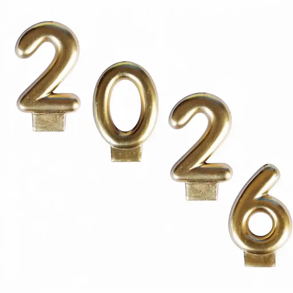 Vela de 2026 dorada con diseño festivo ideal para decoraciones de fin de año centros de mesa y celebraciones especiales acabado brillante material resistente y encendido uniforme perfecta para crear un ambiente elegante y celebrar la llegada del nuevo año. vela 2026 dorada decoracion año nuevo vela festiva 2026 fiesta fin de año