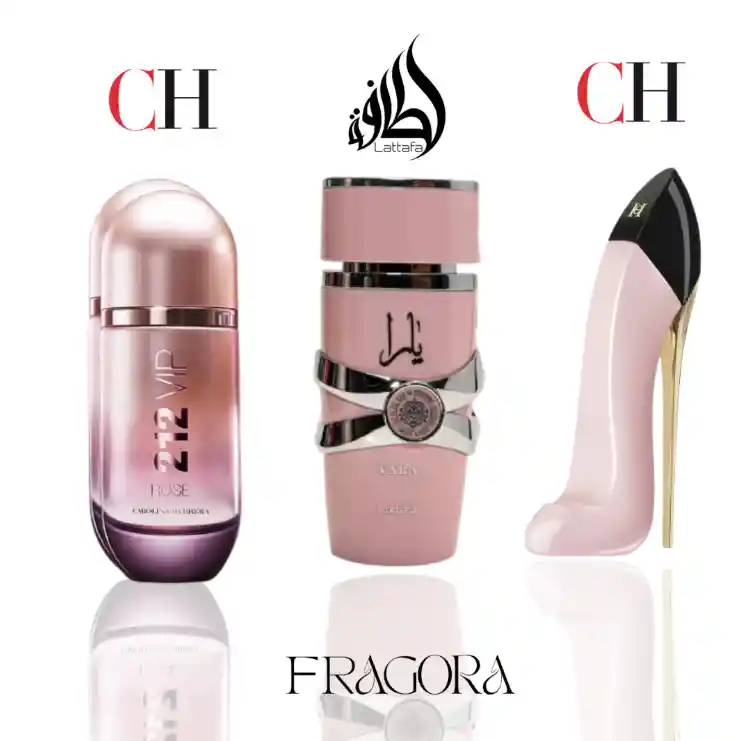 212 VIP Rose | Yara Lattafa | CH Good Girl Blush 🌟 Descubre el combo definitivo para aquellos que aman la elegancia, el estilo y un toque de picardía en su fragancia. Perfecto para mujeres que quieren dejar una huella inolvidable. 🍾 212 VIP Rose: Un perfume fresco y festivo que captura el espíritu de la vida nocturna. Con notas de champagne y durazno, esta fragancia es el acompañante perfecto para eventos glamorosos y para aquellos momentos en los que quieras destacar. 🥂✨ 🍓 Yara Lattafa: Una fragancia moderna y encantadora que combina la dulzura del caramelo y frescas notas frutales. Yara es perfecta para quien busca un aroma juvenil, coqueto y lleno de personalidad. Es el toque de alegría que necesitas para tu día a día. 🍬🌸 💖 CH Good Girl Blush: Elegante y seductora, esta fragancia es un tributo a la feminidad. Con suaves notas florales y un fondo cremoso, Good Girl Blush aporta un aire de sofisticación y sensualidad a tu colección. Ideal para citas y momentos especiales. 🌷💕 Un combo que mezcla frescura, dulzura y elegancia. Lleva este trío y disfruta de un viaje olfativo lleno de estilo y sofisticación. ¡Haz que cada día sea inolvidable con esta poderosa combinación!