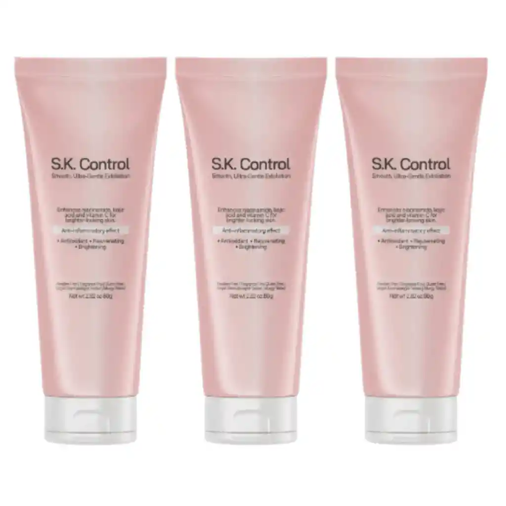 SK-Control es un exfoliante facial diseñado para ayudar a limpiar profundamente la piel, remover impurezas y mejorar la textura del rostro, permitiendo que la piel luzca más fresca, suave y con apariencia saludable. Con el paso del tiempo, la piel acumula células muertas, residuos de maquillaje, grasa y partículas provenientes del ambiente como contaminación o polvo. Esta acumulación puede hacer que el rostro se vea apagado, áspero o con poros más visibles, afectando la apariencia general de la piel. SK-Control fue desarrollado para ayudar a eliminar estas impurezas mediante un proceso de exfoliación suave que contribuye a renovar la superficie de la piel. Al remover las células muertas que se acumulan en la capa externa, la piel puede verse más limpia, más luminosa y con una textura más uniforme. La exfoliación es un paso importante dentro de cualquier rutina de cuidado facial, ya que ayuda a preparar la piel para recibir mejor otros productos cosméticos como cremas, sueros o tratamientos hidratantes. Cuando la piel se encuentra libre de impurezas y células muertas, los productos aplicados posteriormente pueden absorberse con mayor facilidad. SK-Control actúa ayudando a mejorar la apariencia de la piel sin ser agresivo, permitiendo que la exfoliación forme parte de una rutina regular de cuidado facial. Su fórmula está pensada para ofrecer una sensación de limpieza profunda mientras contribuye a mantener la piel confortable. Uno de los beneficios más importantes de utilizar un exfoliante como SK-Control es que ayuda a refinar la textura del rostro, permitiendo que la piel luzca más suave al tacto y visualmente más uniforme. Además, la exfoliación regular puede contribuir a mejorar la apariencia de los poros y ayudar a que la piel recupere luminosidad, ya que elimina la capa de células que suele opacar el rostro. ¿Para qué sirve SK-Control? SK-Control está diseñado para ayudar a: Limpiar profundamente la piel Eliminar células muertas acumuladas Mejorar la textura del rostro Aportar mayor luminosidad a la piel Ayudar a reducir la apariencia de poros visibles Preparar la piel para la aplicación de otros productos cosméticos Beneficios de SK-Control • Exfoliación suave: ayuda a remover impurezas sin maltratar la piel. • Piel más luminosa: contribuye a que el rostro luzca más fresco y radiante. • Mejora la textura de la piel: deja una sensación más suave al tacto. • Limpieza profunda: ayuda a retirar residuos que se acumulan en la superficie de la piel. • Complemento ideal en la rutina facial: prepara la piel para absorber mejor otros tratamientos. ¿Quién puede usar SK-Control? Este exfoliante está recomendado para personas que desean: Mantener una piel limpia y renovada Mejorar la apariencia de la textura del rostro Reducir la sensación de piel áspera o apagada Complementar su rutina de cuidado facial Puede ser utilizado por personas que buscan mantener la piel con una apariencia más fresca y luminosa, incorporando la exfoliación como parte de su rutina de cuidado. Modo de uso Humedecer ligeramente el rostro. Aplicar una pequeña cantidad de SK-Control sobre la piel. Masajear suavemente con movimientos circulares evitando el área de los ojos. Enjuagar con abundante agua. Se recomienda utilizar el producto 1 a 2 veces por semana, dependiendo de las necesidades de la piel. Resultado esperado Con el uso regular de SK-Control, la piel puede verse: Más limpia Más suave Más luminosa Con textura más uniforme SK-Control es una excelente opción para quienes desean mantener una rutina de cuidado facial que ayude a renovar la piel y mejorar su apariencia general, aportando una sensación de frescura y limpieza profunda.