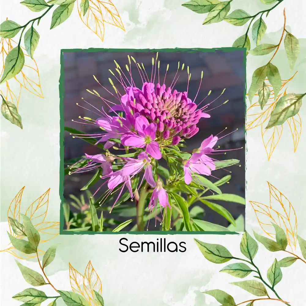 Bienvenido a Garden Green, Tú Vivero Virtual Una vez realizada la compra, te indicaremos como llevar el proceso de germinación paso a paso de una manera precisa, para que este sea exitoso, ya que no solo te vendemos una semilla, te ofrecemos la oportunidad de tener un jardín hermoso. • Contenido del Paquete: 1. Semillas. 2. Guía para la germinación de las semillas. 3. Fertilizante de obsequio. 4. Semillas de obsequio. 5. Contacto directo con nosotros para ayudarte en tu proceso de siembra. • Semillas: Cleome Monticello. • Especie: Cleome Hassleriana. • Otros Nombres: Patas de Araña. • Descripción: La Cleome hassleriana, o flor araña, es una planta anual erguida, de rápido crecimiento, nativa de Sudamérica, conocida por sus flores fragantes en tonos rosa, morado y blanco, y sus largos estambres que le dan un aspecto «de araña». Se caracteriza por sus tallos a menudo espinosos, hojas palmeadas y aromáticas, y sus llamativas vainas de semillas; es fácil de cultivar en suelos bien drenados y a pleno sol, atrayendo polinizadores y ofreciendo floración prolongada desde primavera hasta el otoño. • Temperatura: 20° a 25°C. • Germinación: 85% en condiciones óptimas de sustrato, clima y humedad. • Tiempo de Germinación: 20 a 40 días.