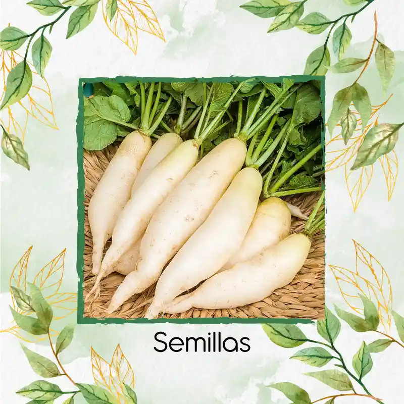 Bienvenido a Garden Green, Tú Vivero Virtual Una vez realizada la compra, te indicaremos como llevar el proceso de germinación paso a paso de una manera precisa, para que este sea exitoso, ya que no solo te vendemos una semilla, te ofrecemos la oportunidad de tener una huerta urbana productiva. • Contenido del Paquete: 1. Semillas. 2. Guía para la germinación de las semillas. 3. Fertilizante de obsequio. 4. Semillas de obsequio. 5. Contacto directo con nosotros para ayudarte en tu proceso de siembra. • Semillas: Rábano Blanco Daikon. • Especie: Raphanus Sativus var. Longipinnatus. • Otros Nombres: Rábano Japonés. • Descripción El daikon, también conocido como rábano blanco, nabo daikón o rábano japonés, es un tipo de rábano blanco que crece principalmente en el sudeste y el este de Asia. Su aspecto es similar a una zanahoria blanca, su textura es crujiente y su sabor es más suave en comparación con el sabor del rábano normal. Es muy utilizado en la elaboración de platos orientales; se puede comer crudo como parte de una ensalada o como ingrediente en sopas, ensaladas, curry, platos de arroz, entre otras preparaciones. a semilla conservada en buenas condiciones mantiene su viabilidad durante seis años. Se siembra de asiento, preferentemente en otoño, primavera e invierno. La semilla de rabanito generalmente se esparce a voleo a razón de 12 kg de semilla por hectárea. En cambio, los rábanos se suelen sembrar en líneas a 50 cm, empleando unos 8 kg por hectárea. • Temperatura: 10° a 25°C. • Germinación: 90% en condiciones óptimas de sustrato, clima y humedad. • Tiempo de Germinación: 4 a 40 días.
