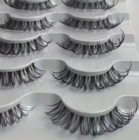 5 pares de pestañas rusas rizadas y esponjosas con rayas y tallos transparentes, creando una apariencia natural y efecto 8D