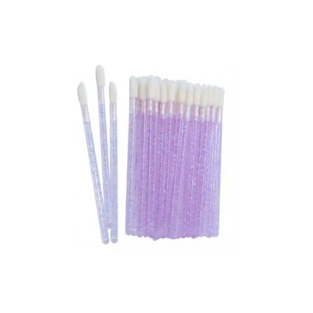 50 Aplicadores de maquillaje de fibra con mango acrílico escarchado 100% nuevo y de alta calidad Varitas Desechables Las cerdas suaves brindan una cobertura uniforme de color de labios, sombras para ojos. Ideal Para maquillaje, después de rizar las pestañas. Ideal para aplicar anestesia o pigmento en el proceso de Micropigmentación o microblading. Util para aplicar, primer y removedor de pestañas, en el proceso de implantación de pestañas pelo a pelo. Materiales de lana: fibra y acrílico escarchado Longitud del pincel: aplicación 9cm Paquete incluye: 50 x aplicadores suaves