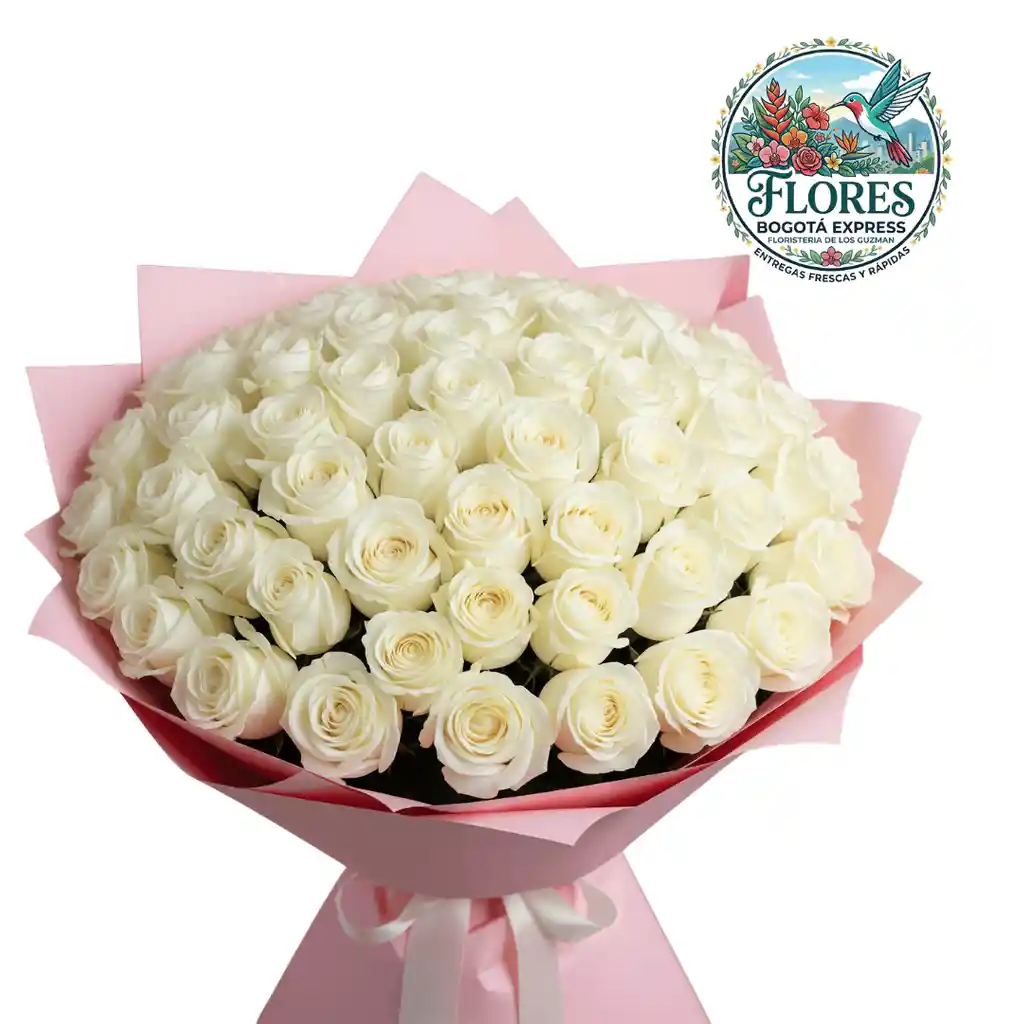 Un ramo sofisticado compuesto por 50 rosas blancas frescas, cuidadosamente seleccionadas por su belleza y perfección. Este arreglo transmite pureza, paz y elegancia, convirtiéndolo en el detalle ideal para expresar amor sincero, admiración o respeto. Envuelto en un delicado papel en tonos suaves que realza la luminosidad de las flores, es perfecto para ocasiones especiales como aniversarios, cumpleaños, condolencias o momentos significativos donde las palabras no son suficientes.