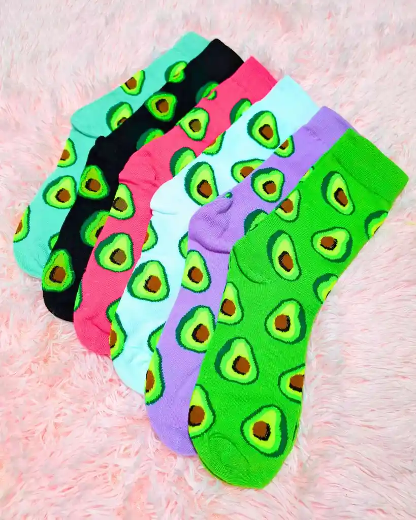 ¡Combo de 6 pares de medias largas con diseño de aguacates! 🥑🧦 Talla única (38-42), perfectas para todos los días: cómodas, suaves y con colores vibrantes que resaltan tu estilo. ¡Ideales para regalar o emprender con productos originales y divertidos!