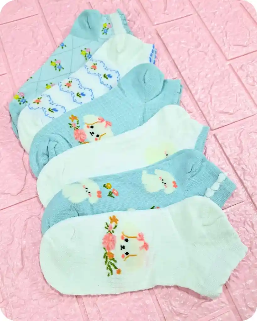 Talla Única: se ajustan perfectamente a tallas del 34 al 40, para que todos puedan lucir estas hermosas medias. Composición: Elaboradas en poliéster, poliamida y elastano de alta calidad, garantizando suavidad y durabilidad en cada uso. Estas medias tobilleras son el complemento ideal para tu guardarropa. Su color celeste y diseño cute aportan un aire fresco y divertido a cualquier outfit, ya sea para un día casual en casa o una salida con amigos. Además, su material ligero permite que tus pies se sientan cómodos y frescos durante todo el día. ¡No te pierdas la oportunidad de añadir un toque de diversión y estilo a tu look! Hazte con tus Medias y disfruta de cada paso.