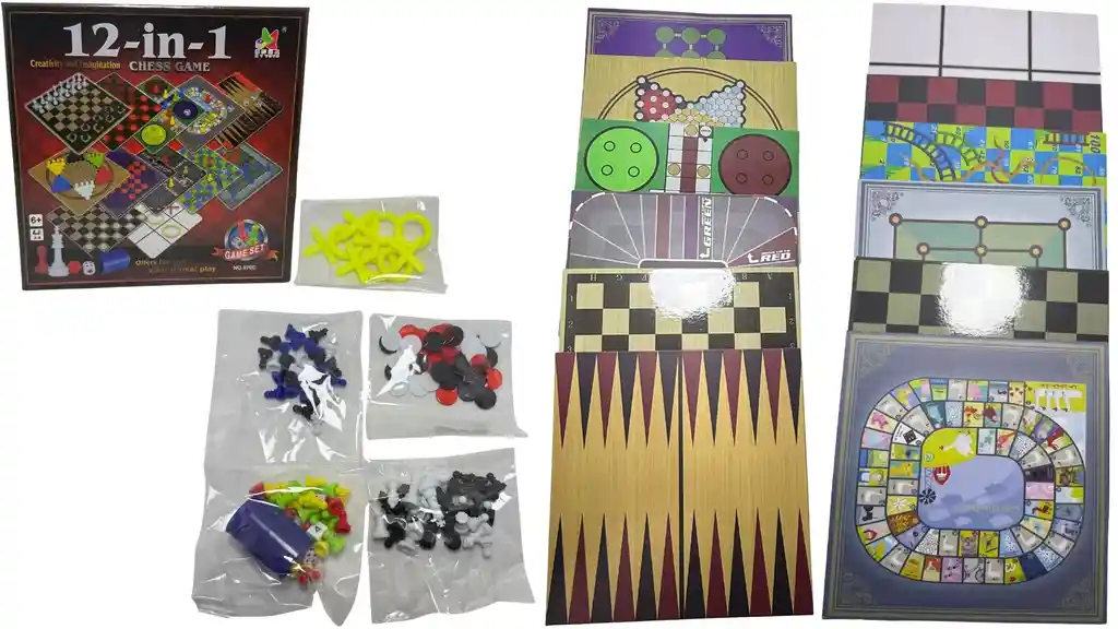 Tableros 12 en 1 Juegos de Mesa REF: 870C Disfruta de un completo set de juegos de mesa en un solo paquete. Este increíble tablero 12 en 1 incluye clásicos como ajedrez, damas chinas, dado, escalerita, triqui, entre muchos más. Perfecto para compartir en familia y pasar momentos llenos de diversión y aprendizaje. El juego cuenta con 6 tableros reversibles, cada uno con 2 juegos diferentes, ideales para desarrollar habilidades de concentración, estrategia y pensamiento lógico. Incluye fichas, dados y todo lo necesario para comenzar a jugar de inmediato. Medidas: Caja: 16.5 cm de largo x 16.5 cm de alto x 5 cm de ancho Tablero: 15 cm x 15 cm Un producto educativo y entretenido para todas las edades. Perfecto para viajes, reuniones o tardes en casa. Compacto, práctico y con una gran variedad de opciones para que la diversión nunca termine. ZZZZZZZZZZZZZZZZZZZZZZZZZZZZZZZZZZZZZZZZZZZZZZZZZZZZZZZZZZZZZZZZZZZZZZ MÁS DETALLES: Condición: Nuevo MÁS INFORMACIÓN DE NOSOTROS Somos INVERSIONES MAZUGI. Importadores directos desde China. Cumplimos con distribuir a todo el país. Estamos ubicados en Bogotá, somos tienda virtual y física. PRODUCTOS AL POR MAYOR Y DETALLE Somos una empresa importadora y comercializadora de productos de alta calidad en diversas categorías como: belleza, tecnología, hogar, juguetería, cuidado personal, entre otras.