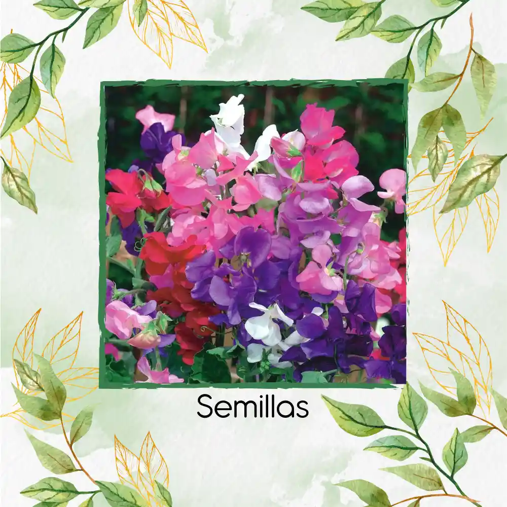 Bienvenido a Garden Green, Tú Vivero Virtual Una vez realizada la compra, te indicaremos como llevar el proceso de germinación paso a paso de una manera precisa, para que este sea exitoso, ya que no solo te vendemos una semilla, te ofrecemos la oportunidad de tener un jardín hermoso. • Contenido del Paquete: 1. Semillas. 2. Guía para la germinación de las semillas. 3. Fertilizante de obsequio. 4. Semillas de obsequio. 5. Contacto directo con nosotros para ayudarte en tu proceso de siembra. • Semillas: Guisantes de Olor Gigantes. • Especie: Lathyrus Odoratus. • Otros Nombres: Arveja Olorosa. • Descripción: Estas flores grandes y onduladas impresionarán con sus encantadores tonos rosa, rojo, azul, lila y blanco. Estas enredaderas resistentes al calor florecen hasta bien entrado el verano, impregnando cada rincón del jardín con sus dulces aromas. Esta flor anual es fácil de cultivar y se adapta a casi cualquier jardín. • Temperatura: 13° a 18°C. • Germinación: 95% en condiciones óptimas de sustrato, clima y humedad. • Tiempo de Germinación: 14 a 40 días.