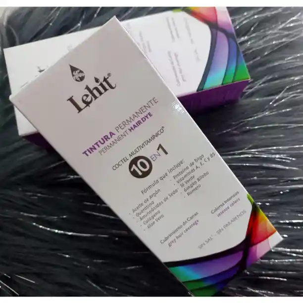 Tintura permanente de la MARCA LEHIT, el kit contiene: 1. tubo con crema colorante de 60 g 1. frasco en crema reveladora por 90 g 1. sachet con tratamiento por 10 g 1. par de guantes USAR CON CREMA REVELADORA DE 6 %( 20V)