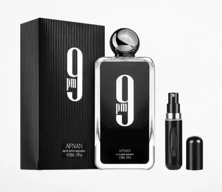 9 PM 1.1 de Afnan es una fragancia masculina tipo Eau de Parfum, con perfil ámbar avainillado y carácter nocturno. Su composición combina manzana, canela, lavanda silvestre y bergamota en la salida; flor de azahar del naranjo y lirio de los valles en el corazón; y vainilla, haba tonka, ámbar y pachulí en el fondo. Diseñada para proyectar seducción cálida, intensidad envolvente y una estela duradera ideal para salidas nocturnas. Presentación en frasco de 100 ml versión 1.1, acompañado de perfumero recargable (color sujeto a disponibilidad). Producto empacado en caja con celofán, pin y sello.