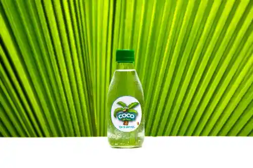 Agua de Coco 100% naturalsin preservantes sin azucares añadidos. Envase vidrio.