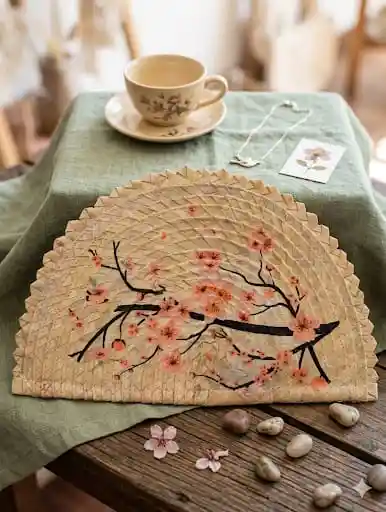 Abanico de palma natural pintado a mano