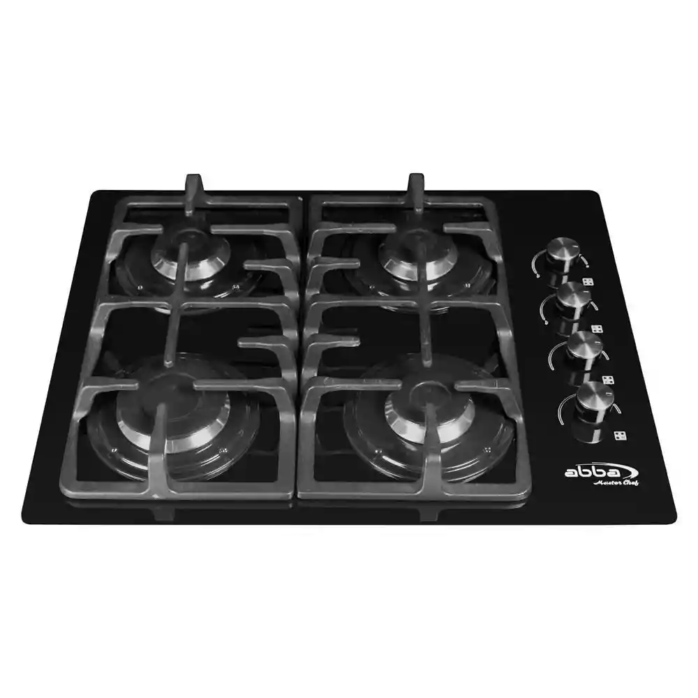 Estufa de Empotrar Vidrio Abba 4 Puestos CG 401 V5DN N -Descripción Mesa sellada en vidrio de seguridad. Bandejas quemadores porcelanizadas.