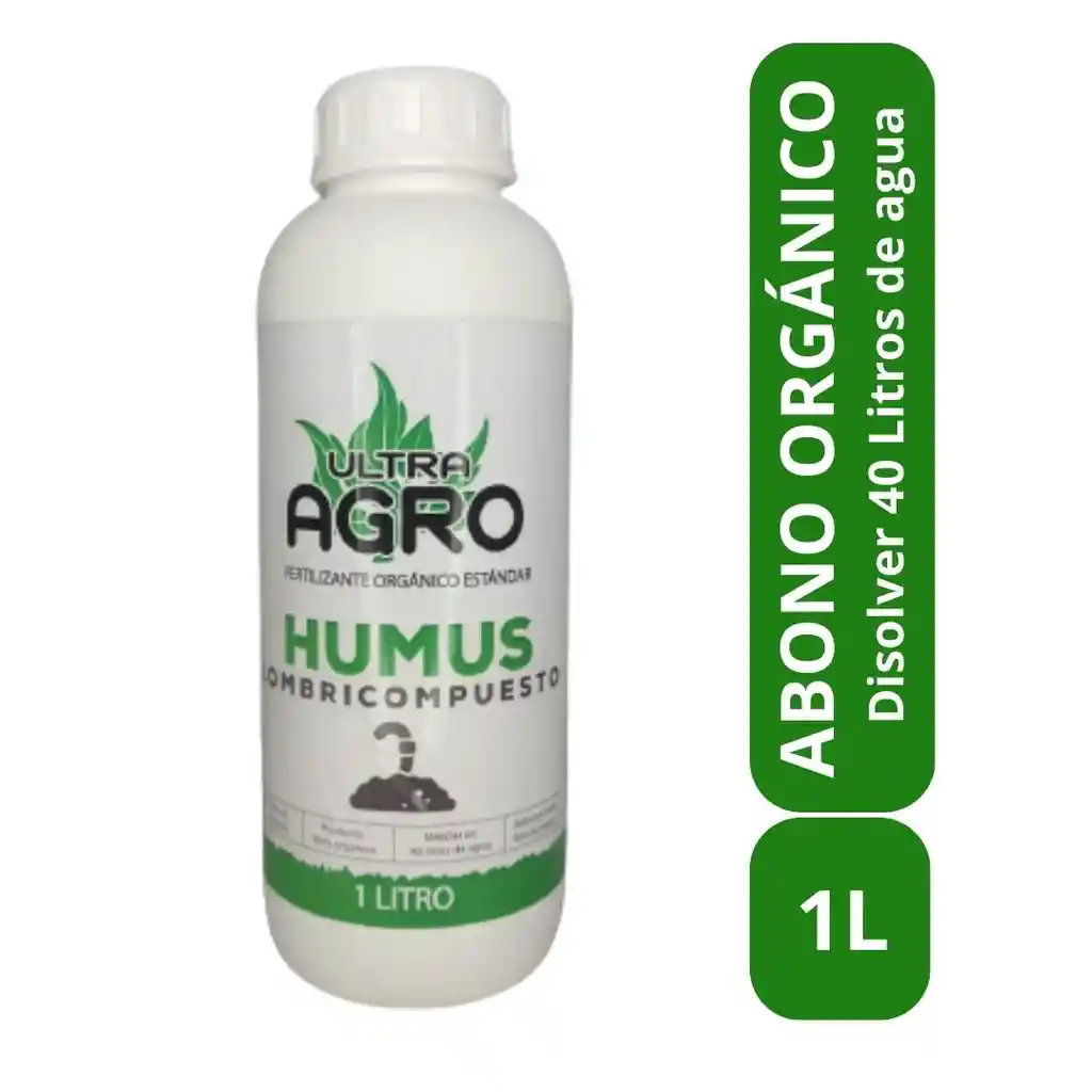 1 Litro Estandar se debe mezclar en 40 litros de agua para raiz o 50 litros para foliar la planta El humus es un fertilizante orgánico de origen 100% natural que tiene la habilidad de mejorar la tierra regulando el pH, aportando macronutrientes que ayudarán a las plantas hacer más fuertes y resistentes a las enfermedades y plagas.