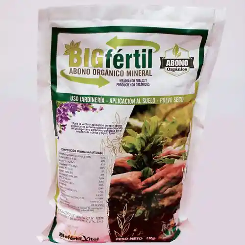 Saludos Estimados Agricultores. El abono orgánico BIGFERTIL es un producto obtenido mediante el proceso denominado “fermentación controlada de la materia orgánica” que se estabiliza a través de la inoculación líquida microbiológica y aplicación de principios fisicoquímicos naturales. El abono orgánico posee propiedades físicas tales como densidad, capacidad de intercambio catiónico, ph, entre otras, elementos minerales (ver ficha técnica anexa) y microorganismos que activan los suelos actuando en biorremediación y devolviendo las propiedades naturales de los mismos. Es de anotar que en la elaboración de nuestro abono utilizamos piletas de fermentaciòn, maduraciòn y secado en donde a través de un proceso SIN VOLTEOS y con la inoculación de un compendio de 12 bacterias y hongos benéficos para la agricultura, se produce en 45 días un abono totalmente compostado y maduro ya listo para aplicar a los suelos que lo requieran. **SE DESPACHA UN DIA DESPUES DEL PAGO REALIZADO** *COMPRE CON SEGURIDAD Y CONFIANZA Somos AgricUrbana, amplia experiencia en ventas on-line. Aceptamos todas las formas de pago Despachos a todo el pais*