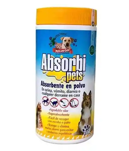 Absorbente en polvo, fácil y rápido de usar que gelifica todo tipo de líquidos especialmente la orina de su mascota. Absorbipets facilita la recolección de los desechos con escoba o paño, dejando la superficie limpia y seca, evitando conductas repetitivas. Absorbipets puede ser utilizado en vómito, diarrea o cualquier líquido que se derrame en casa como, jugos, cafe, gaseosa, vino, etc. Absorbipets ayuda a absorber, encapsular y eliminarlos olores generados por la orina de su mascota, gracias a sus componentes evita que su mascota realice sus necesidades nuevamente en el lugar donde se utilizo Absorbipets.