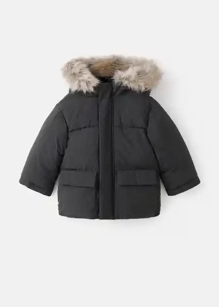 Capucha Con Detalle de Pelo Sintético Cierre Delantero de Botones Oculto Cuello Redondo Diseño Recto Dos Bolsillos de Solapa en la Parte Delantera Manga Larga Tejido Acolchado - 17035788_99.