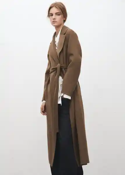 Cierre de Lazo Cinturón Tipo Batín Cuello Pico Con Solapa Diseño Largo Diseño Recto Disponible Plus Dos Bolsillos Laterales Forro Interior Largo Largo Manga Larga Silueta Recto Solapas Con Muesca Tejido Mezcla de Lana - 27071216_09.