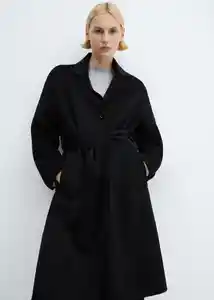 Cierre Delantero Con Botones Cinta en la Cintura Con Cierre de Lazo Cuello Pico Con Solapa Diseño Midi Diseño Recto Dos Bolsillos Laterales Handmade Manga Larga Tejido Mezcla de Lana - 67010452_99.
