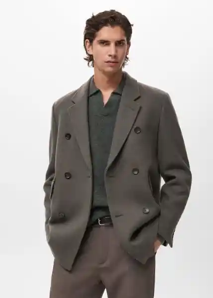 Bolsillo Interior Cierre Delantero Con Botones Cruzados Contra Botón Interno Para Mayor Sujeción Del Botón Exterior Cuello de Solapa Ancha Diseño Corto Dos Bolsillos de Solapa Laterales el Color Khaki es Exclusivo Online el Modelo Mide 190 cm y Lleva Una Talla L Forro Interior Puños Abotonados Regular Fit Tejido Mezcla de Lana - 17027886_39.