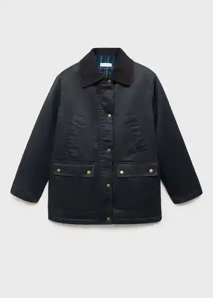 Cierre de Botón y Cremallera Cuello de Solapa Cuello en Contraste Diseño Recto Dos Bolsillos de Solapa Con Botón en la Parte Delantera Dos Bolsillos Laterales Manga Larga Tejido de Algodón - 17035141_56.