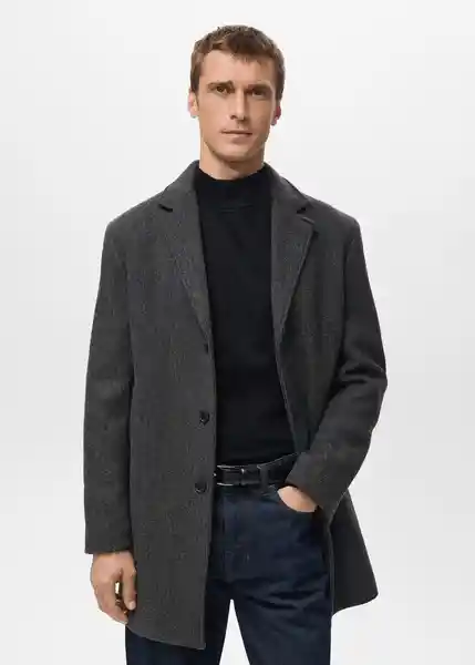 Apertura en la Parte Central Del Bajo Bolsillo de Ribete en el Interior Dos Bolsillos Laterales el Color Gris es Exclusivo Online Largo Medio Manga Larga Con Puño de Tira Abotonada Slim Fit Solapas de Muesca y Ojal Tejido Mezcla de Lana Reciclada - 27041177_96.