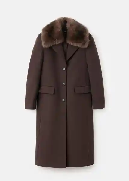 Cierre Delantero Con Botones Cuello de Pelo Extraíble Cuello Pico Con Solapa Diseño Largo Diseño Recto Dos Bolsillos de Solapa en la Parte Frontal Forro Interior Manga Larga Con Puños Abotonados Tejido Mezcla de Lana - 17017771_32.