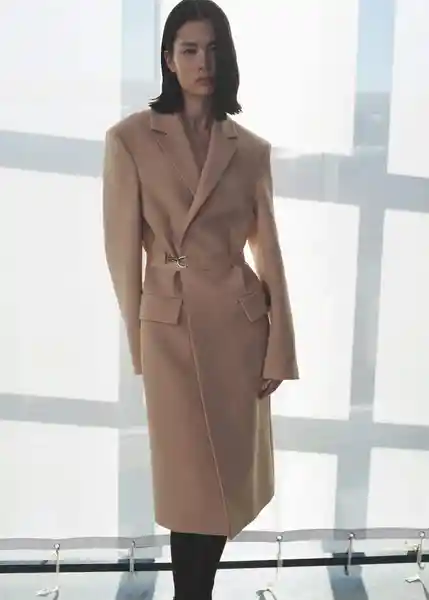Abertura Posterior en el Bajo Cuello Pico Con Solapa Diseño Largo Diseño Oversize Dos Bolsillos de Solapa Laterales Forro Interior Hombros Pronunciados Manga Larga Con Aberturas en Los Puños Sin Cierre Solapas Con Muesca Tejido Mezcla de Lana - 87044811_80.
