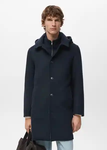 Apertura en la Parte Central Del Bajo Bolsillo Interior Capucha Con Cordón Ajustable Cierre Delantero Con Botones Cuello Camisero Cuello Perkins Con Cierre de Cremallera Opción Desmontable Diseño Largo Dos Bolsillos de Ribete Laterales Manga Larga Regular Fit Tejido Mezcla de Lana - 27041176_56.