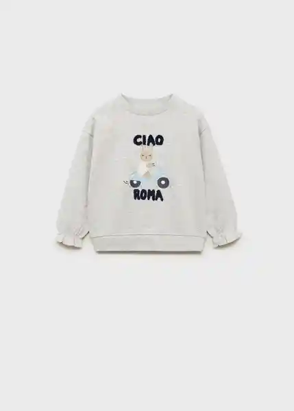 Cuello Redondo Manga Larga Mensaje Estampado Con Relieve en la Parte Delantera Sin Cierre Tejido de Algodón - 87063649_91.