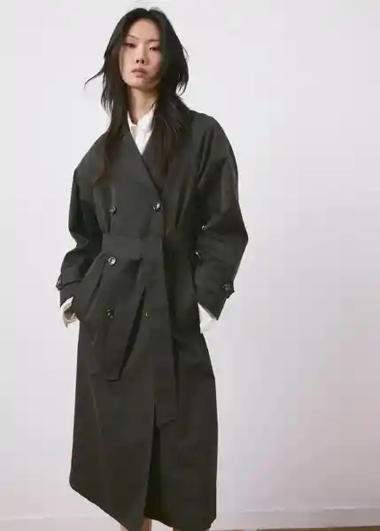 Cierre de Doble Botonadura Cinturón Desmontable Cuello de Solapa Ancha Diseño Largo Diseño Recto Dos Bolsillos Laterales Manga Larga Abotonada Tejido de Algodón - 27044774_32.