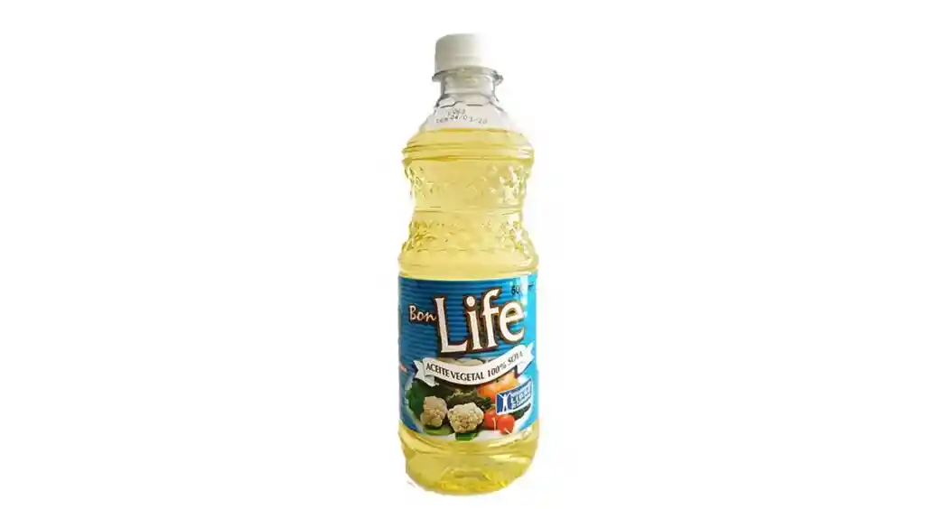 Aceite Bon Life Vegetal de Soya en presentación de 500 mL. Elaborado con soya de alta calidad, es una alternativa ligera y saludable para la preparación de alimentos. Su sabor neutro lo hace ideal para freír, saltear, hornear o preparar aderezos, manteniendo el sabor natural de cada ingrediente. Perfecto para el uso diario en el hogar, gracias a su versatilidad y rendimiento.