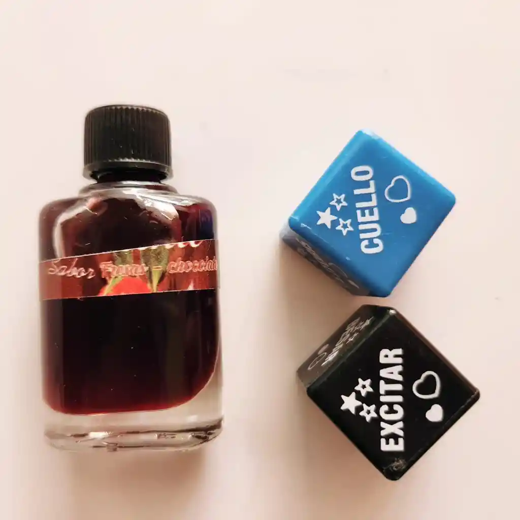 Aceite caliente comestible mas juego de dados sabores surtidos ideal para sexo oral y lubricar contiene 13ml