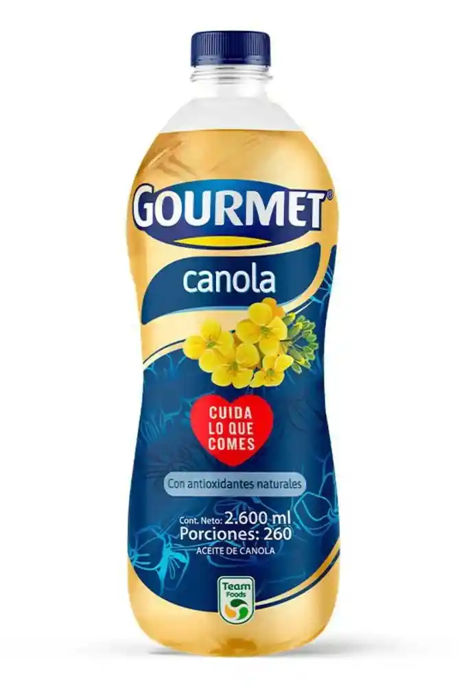 El Aceite Canola Gourmet en su presentación de 2600 mL está elaborado a partir de semillas de canola seleccionadas, ofreciendo una opción saludable y versátil para la cocina familiar. Es naturalmente libre de colesterol y bajo en grasas saturadas, además de contener ácidos grasos esenciales Omega 3 y 6 que contribuyen al cuidado de la salud cardiovascular . Su sabor suave y neutro respeta el gusto original de los alimentos, siendo ideal tanto para freír y cocinar como para preparar aderezos y aliños. La fórmula libre de grasas trans permite disfrutar de preparaciones más saludables sin sacrificar textura ni resultados en la cocción. El formato económico de 2600 mL ofrece el máximo rendimiento para hogares que buscan calidad, salud y abastecimiento prolongado en un solo producto. ______________________________________________________ ________ Somos QUICK MART Comercializadora y Distribuidora de productos Nacionales e Importados, calidad garantizada 100% original. Dentro de nuestro portafolio de productos podrás encontrar licores (debidamente estampillados), alimentos, dulces, productos de aseo y mucho más de acuerdo a tu necesidad. Estamos ubicados en la ciudad de Bogotá, por medio de MERCADO ENVÍOS hacemos despachos a nivel nacional, si compras antes de la 14pm por MERCADO FLEX entregamos el mismo día (aplica solo para Bogotá), en horario extendido hasta las 10 p.m. Invitamos a nuestros clientes a visitar nuestra tienda virtual en MercadoShop con las mismas garantías de Mercado Libre, allí podrás conocer todo nuestro catálogo y encontrar promociones que solo aplican en nuestra tienda virtual. Las imágenes utilizadas son de referencia y por lo tanto la presentación del producto puede variar en el momento del despacho, el producto es el mismo ya el empaque depende de cada proveedor. ______________________________________________________________