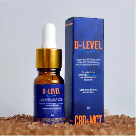 D-Level es un producto natural a base de aceite con CBD Colombiano que usa como vehículo o medio un aceite especial conocido como cadena media de triglicéridos o MCT, que aumenta la absorción del producto y facilita su efectividad. Contiene: 350 mg de Cannabidiol proveniente de aceite de cáñamo de amplio espectro (incluye otros cannabinoides, flavonoides, terpenos y antioxidantes) permitiendo el efecto séquito (entourage effect). Tiene además aceite de triglicéridos de cadena media que aumenta sus beneficios. PRODUCTO SIN THC Formulado con tecnología X-Sorption para potenciar su absorción y biodisponibilidad, siendo las mayores disponibles en el mercado PRODUCTO CON REGISTRO INVIMA BENEFICIOS DE UTILIZAR ACEITE CON CBD D-LEVEL: Mejora sustancialmente los síntomas de migraña Excelente tratamiento para trastornos de sueño y epilepsia Ayuda a dormir mejor, incluso si no hay trastornos de sueño Disminuye el dolor (Fibromialgia, artrosis, artritis, dolor lumbar, dolores articulares, dolores menstruales, entre otros) Controla la ansiedad Mejora el ánimo Aumenta las defensas Tiene efecto antiinflamatorio Ayuda en el manejo de adicciones (cigarrillo y otras drogas) Neuroprotector (previene y trata síntomas de demencias) Excelente en la recuperación del COVID-19. Beneficios adicionales por contenido de MCT Aliado ideal en el control de peso y manejo del apetito Ayuda a disminuir la grasa corporal total y disminuye resistencia a la insulina Aumenta la energía Mejora la microbiota intestinal Ayuda a disminuir el colesterol malo Beneficios en mascotas: Disminuye dolores Ayuda en el tratamiento de Epilepsia