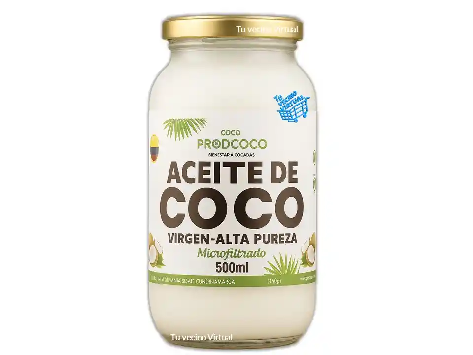 En tu vecino virtual también encontraras : Anyeluz, syam cosmetic, piel de oro, Kaba, class gold, lampiña, Te verde de matcha Benefit, te plus, te latte, te negro, exfoliante, aceite de coco, pomada alfa, colageno hidrolizado,vinipel osmótico, Bioaqua Acne, Mascarillas,tónico, Trendy, la pocion, HGW y muchos mas ————————————————————————————————————————————————— ---------------------------------------------------------------------------------------------- Aceite de coco virgen de alta pureza – Prensado en frio y Microfiltrado 500 mL ACEITE CONCENTRADO 100% PURO VIRGENCULTIVOS Y PRODUCCIÓN COLOMBIANA El aceite de coco es uno de los aceites con más alto contenido en ácidos grasos esenciales y a sus muchos nutrientes. Es un producto ideal para el consumo oral, así como para el uso cosmético, ya que tiene una composición muy beneficiosa para nuestro cuerpo, tanto interno como externo. Si la temperatura ambiente es inferior a los 23°C el aceite se torna de color blanco y contextura semi-solida, de igual forma esto no altera las propiedades del mismo. Beneficios del aceite de coco -Al ser un aceite vegetal ayuda a regular los niveles de colesterol en la sangre. -Es un alimento muy saciante, por lo que se suele consumir en dietas para bajar de peso. -Es un aliado en dietas para adelgazar porque estimula la quema de grasas. -Ideal para cuidar tu piel y tu cabello, debido al aporte en ácidos grasos y en vitamina E, nutriente esencial para nuestro cuerpo.Formas de uso - Para la cocción de los alimentos (reemplaza tu aceite vegetal por aceite de coco) - Crema hidratante corporal. - Exfoliante - Desmaquillador - Prevenir las estrías - Hidratar labios resecos - Nutrición e hidratación del cabello - Combatir las arrugas - Evitar o reducir la celulitis - Eliminar cicatrices y/o curar heridas de forma natural. Color: Trasparente Consistencia: Liquida Permiso sanitario Invima PSE-001391-2018Producto apto para el consumo, para uso Tópico o alimenticio. Contenido: 500 mL