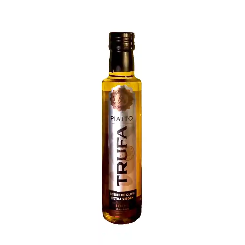 Aceite de oliva extra virgen con TRUFA negra 100% italiano. Marca PIATTO. Ideal para agregar un toque final a tus comidas como ensaladas, pastas, carnes, y otros.