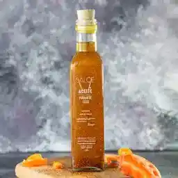 Aceite de oliva extra virgen español. Lo elaboramos con un con ají picante en escama. Puedes usarlo para cocinar o al terminar la preparación. Úsalo en ensaladas, arroces y preparación de diferentes proteínas.