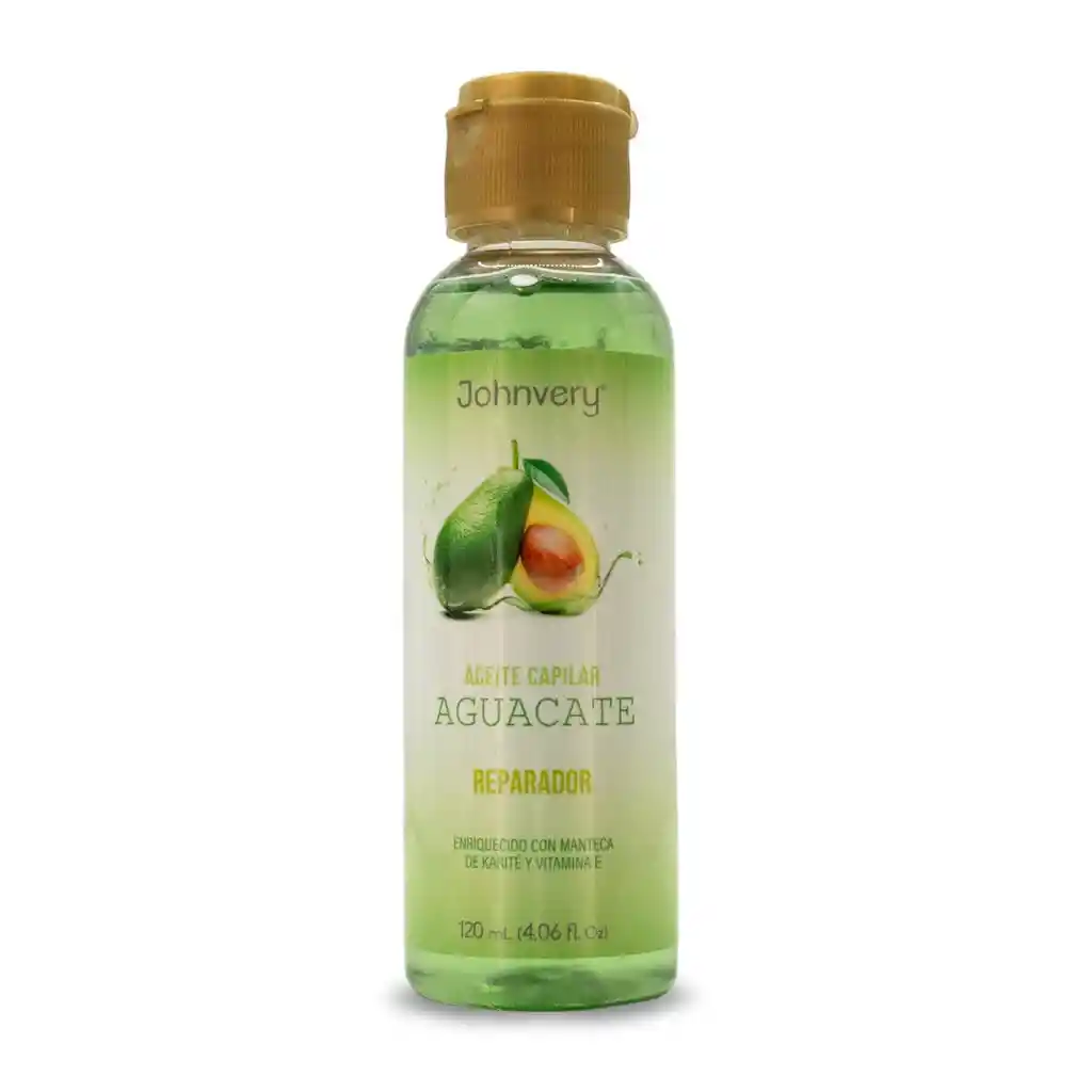 ACEITE JOHNVERY DE AGUACATE 120 ML : Estimula los procesos metabólicos en la piel, restablece el cabello frágil y débil. Excelente antioxidante por su alto contenido de Vitamina E. Descubre el secreto para un cabello radiante con el Aceite de Aguacate de Johnvery! Nuestro Aceite de Aguacate para el cuidado capilar es la solución perfecta para nutrir y reparar tu cabello de forma natural. Con una fórmula 100% natural y libre de parabenos, este aceite está diseñado para brindarte los beneficios del aguacate, la vitamina E y la manteca de karité, sin dejar sensación grasosa. Disfruta de un cabello suave, brillante y saludable, sin la presencia de químicos agresivos. Nutre tu cabello desde la raíz hasta las puntas, restaurando su vitalidad y fuerza con cada aplicación. Dale a tu cabello el cuidado que se merece con el Aceite de Aguacate de Johnvery. ¡Hazlo parte de tu rutina de cuidado capilar hoy mismo! Modo de uso Aplicar suavemente con pequeños masajes en el cabello y sobre la piel áspera y seca.