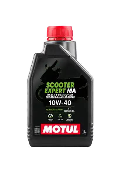 MOTUL SCOOTER EXPERT 4T 10W-40 MA está específicamente diseñado para scooters y maxi-scooters equipadas con motores de 4 tiempos, de cualquier cilindrada, con o sin catalizador, con embrague húmedo. Todo tipo de scooters para desplazamientos diarios al trabajo o para uso urbano. Apto para todo tipo de gasolinas, con o sin plomo, biocombustibles.