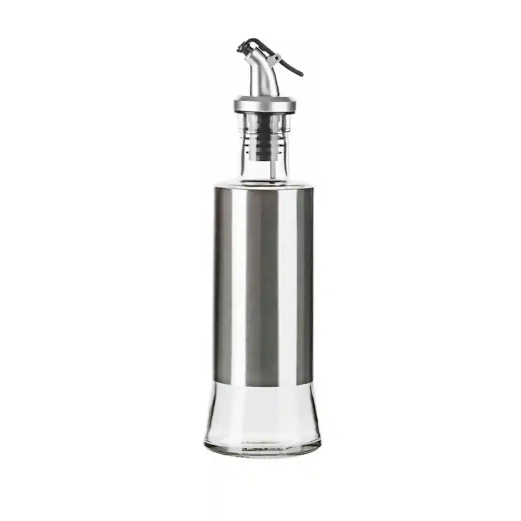 Hecho de acero inoxidable y vidrio. Con sistema anti goteo. Cuerpo de vidrio seguro y saludable. Boquilla con diseño anti goteo. Su capacidad es de 500 ml (16oz). Incluye tapa práctica que protege el contenido. Resistencia a la corrosión y al desgaste. Apto para uso diario. Uso doméstico o profesional. Ideal para mesa y cocina. Material saludable y no tóxico. Ideal para aceite y vinagre. Fácil limpieza y mantenimiento. La imagen ha sido ambientada; no incluye accesorios adicionales y el color puede variar según la iluminación.