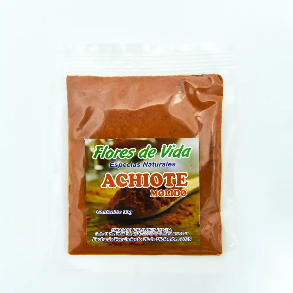 El achiote molido es una especia natural de 30g, utilizada para dar color y sabor a diversos platillos. Es ideal para adobos, salsas y guisos, ofreciendo un toque único y característico en la cocina.