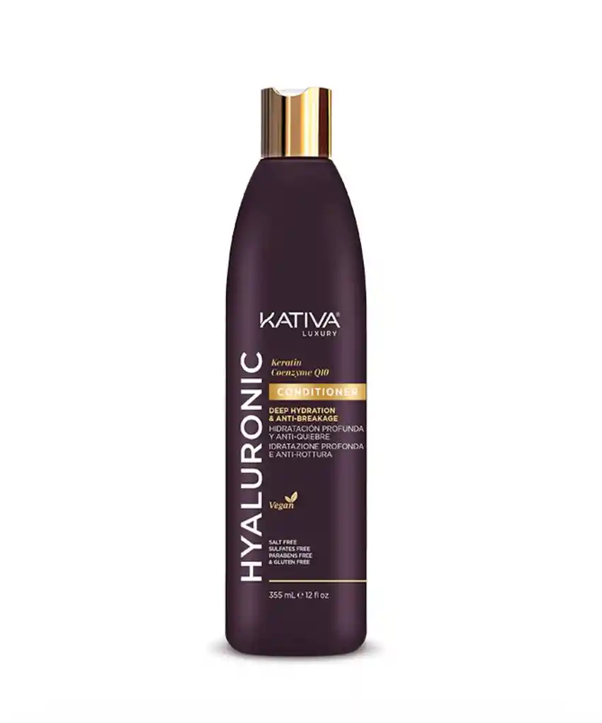 Hidratación profunda y antiquiebre. Acondicionador que suaviza el cabello. Hyaluronic: Ayuda a las fibras capilares a retener y sellar la humedad, permitiendo una profunda hidratación. Repara el cabello poroso y las puntas abiertas evitando el quiebre. Keratin: Fortalece, revitaliza y nutre el cabello devolviéndole su estado natural. Intensifica el color, brillo y textura, brindando más suavidad al cabello y evitando el frizz. Coenzyme Q10: Su acción antioxidante ayuda a la reestructuración del cabello dañado, fortaleciéndolo y devolviéndole la elasticidad. Aplicar el acondicionador sobre el cabello húmedo, de medios a puntas. Dejar reposar por 3 minutos y enjuagar con abundante agua.